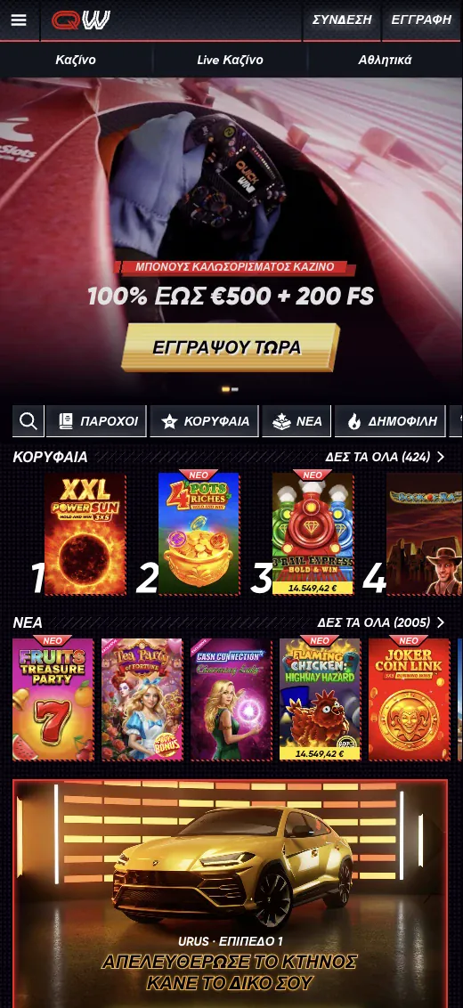 Αν είστε έτοιμοι να ξεκινήσετε, ολοκληρώστε την εγγραφή στο Quickwin, διεκδικήστε την προσφορά καλωσορίσματος καζίνο και κρατήστε σωστά τα στοιχεία σας για να αποφύγετε καθυστερήσεις. Η δημοσιευμένη προσφορά καλωσορίσματος καζίνο για την Ελλάδα περιλαμβάνει μπόνους Quickwin 100% έως 500 EUR συν 200 Free Spins (ελάχιστη κατάθεση 20 EUR, τζίρος 35x σε κατάθεση+μπόνους και 40x στα κέρδη από Free Spins). Για τα αθλητικά, μπορεί να ισχύουν ξεχωριστά μπόνους μέσα στην ενότητα αθλητικών και μπορείτε να τα παρακολουθείτε από τον ίδιο mobile λογαριασμό.